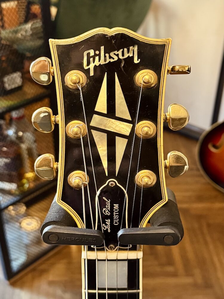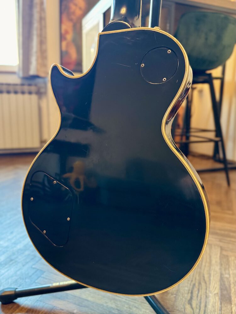 1993 Gibson Custom Shop “Pre-Historic” 1957 Reissue Les Paul Custom in Ebony finish.  The guitar is all original with original frets and original case. Condition is very good, the guitar has a light relic look which gives her a natural charm. Playability is superb and sound is not behind. Very easy to play guitar with unique and beautiful sound. Specs: Nut Width: 1.73″ 1st Fret: 0.89″ 12th Fret: 1.03″ Neck Type: Chunky 50’s Finger Board: Ebony Pickups: 57 Classics The case is original but it has a new handle because the old one was worn.